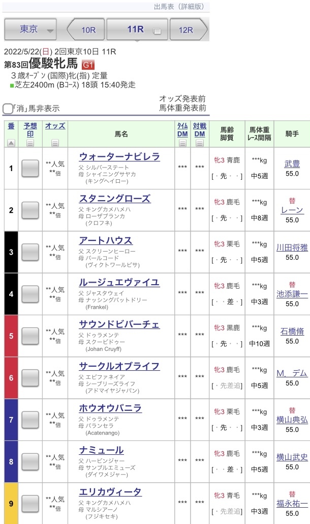 オークス枠順